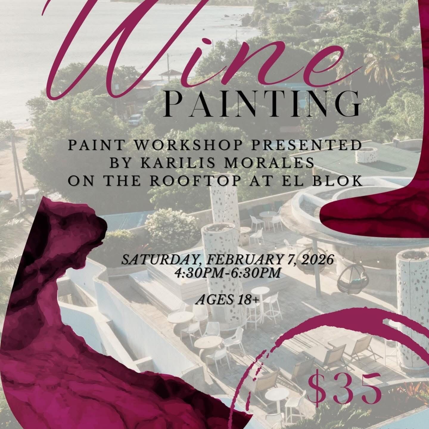 Paint Workshop presented by Karilis Morales where attendees will use Wine as a medium to create unique and personal works of art. Canvas and Materials Provided.