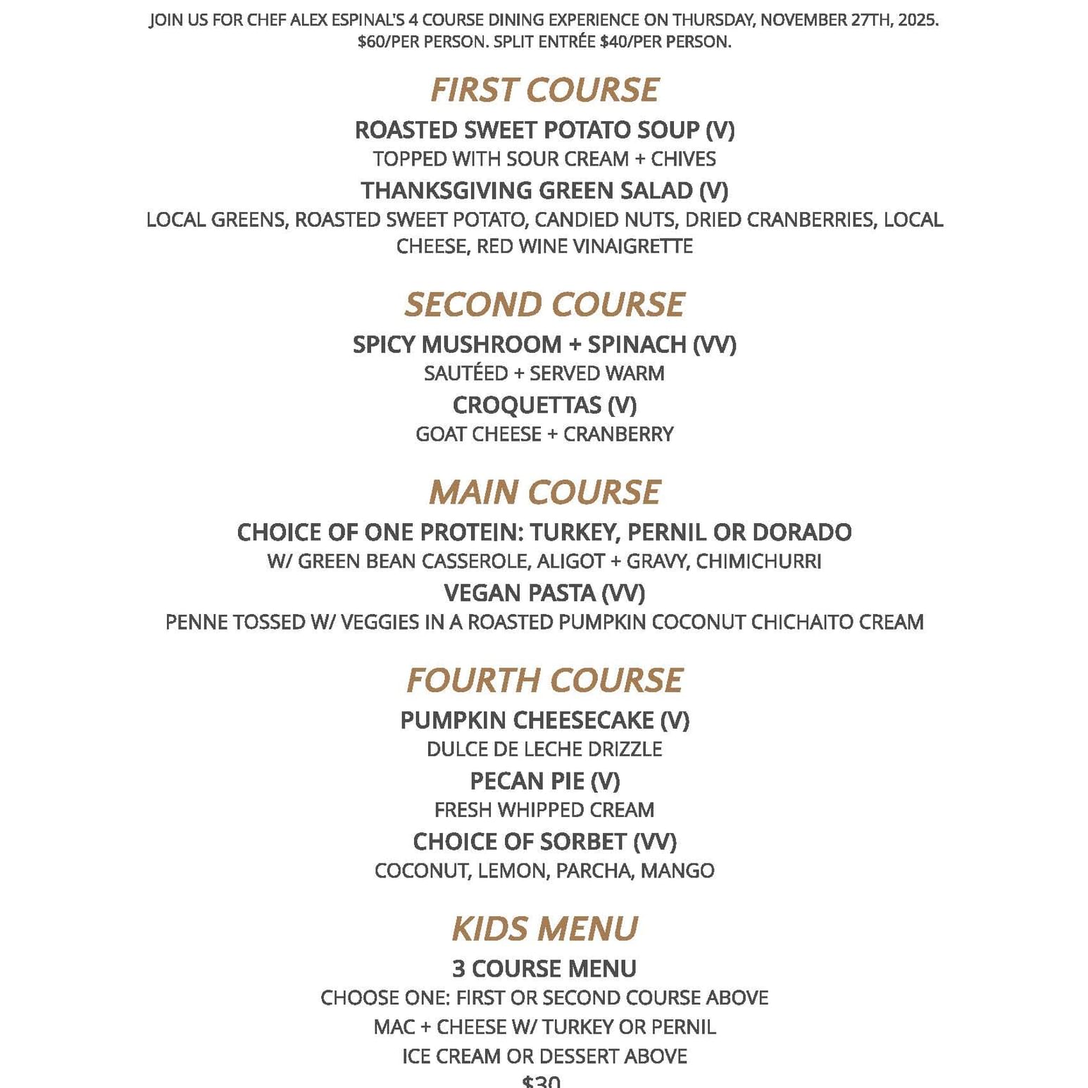 Join us for Thanksgiving Dinner - 4PM-9PM, Thursday, November 27th, 2025.